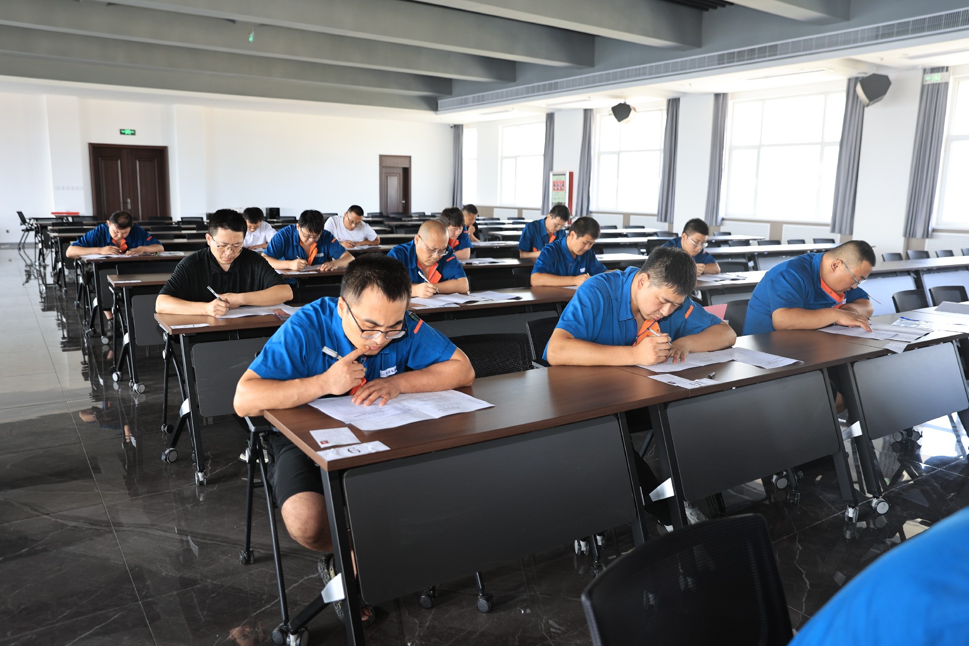 2023年8月25日,福山區(qū)“技能興煙”職業(yè)技能競(jìng)賽暨煙臺(tái)環(huán)球機(jī)床裝備股份有限公司第二十四屆員工技能競(jìng)賽于福潭路廠區(qū)4樓報(bào)告廳開幕。本次競(jìng)賽最終舉辦的工種為鉗工,共5家企業(yè),24位選手報(bào)名參賽,福山區(qū)人社局黨組成員、副局長(zhǎng)徐雯斐,福山區(qū)總工會(huì)黨組成員、副主席劉榮田,公司黨委書記、常務(wù)副總經(jīng)理崔文剛,工會(huì)主席陳瑋,企業(yè)管理中心副主任王德祥出席本次開幕式。開幕式后,參賽選手進(jìn)行了緊張的理論考試作答。